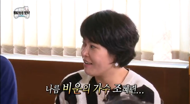 이어 조혜련은 "가끔 특집 하잖아요. 노래 이런거. 나도 가수출신인데 왜 안불러요?"라며 불만을 털어놓자 당황한 유재석이 "'아나까나'가 방송사마다.."라고 조심스레 핑계 아닌 핑계를 말했다.