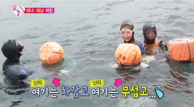 평소 물 공포증이 있는 소은은 입수 전부터 공포에 질려 청심환을 찾았고, 입수 후에는 해녀 아주머니에게 의지한 채 “놓으면 안돼요!‘를 연신 외치며 비명을 질러 주위를 폭소케했다.