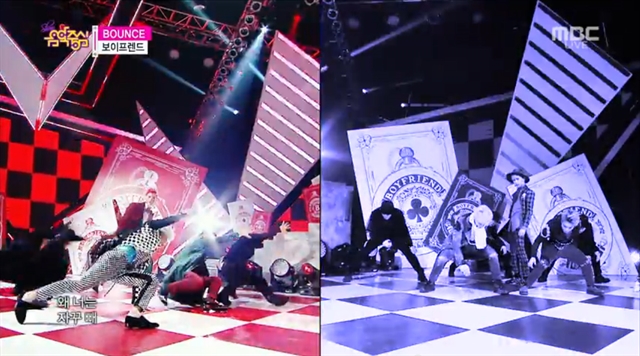 보이프렌드, 2분할 화면 기법 돋보이는 '바운스' 무대 '신선함' - 티브이데일리