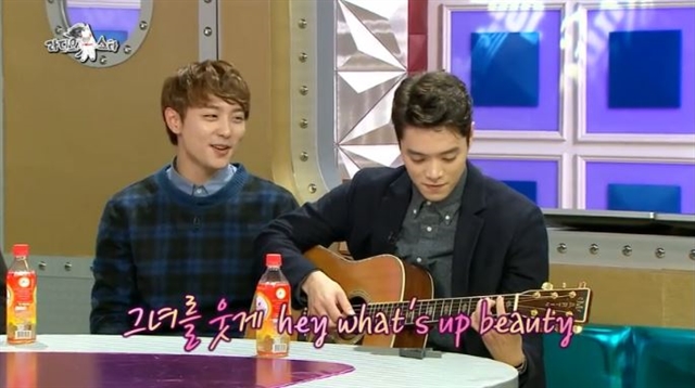 11일(수) 방송된 MBC 예능프로그램 <황금어장-라디오스타>에서는 현우가 에디킴의 기타연주에 맞춰 수준급의 노래실력을 선보이는 모습이 그려졌다.