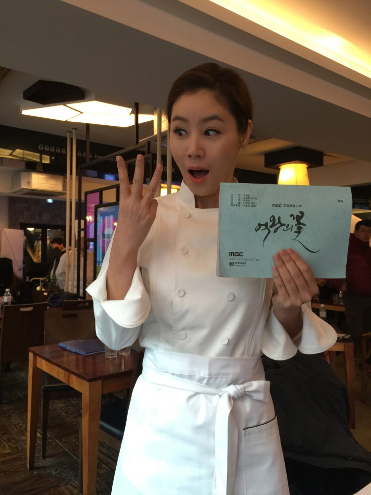 한손에 <여왕의 꽃> 대본을 든 채 , 20%를 인증하는 미녀셰프의 모습에 촬영장의 즐거움과 함께 30% 기원 샷에는 20대 같은 깜찍함까지 전해진다.