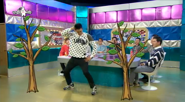 김영철은 신들린 표정연기를 선보이면서 "내가 샤워실에서 봤다. 모두 벗고 위아래~♪ 춤을 추더라. '나 시켜달라'는 소리가 아니겠냐"며 눈을 빛냈고, 정겨운 역시 흔쾌히 선보이겠다며 자리에서 일어났다.