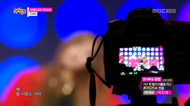 25일 방송된 MBC <쇼! 음악중심>에서는 EXID가 대표곡 ' Ah yeah(아예)'로 농염한 섹시 무대를 꾸몄다. 특히 EXID의 무대는 '직캠'을 컨셉으로 꾸며져 눈길을 끌었다.