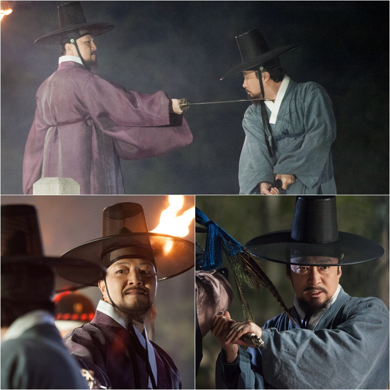 바로 숨가쁘게 뛰어가는 이성민의 앞을 가로막은 정웅인이 이성민에게 칼끝을 겨누는 모습이 공개된 것. 정치적 앙숙인 정웅인과 이성민의 맞대결이 예고되며 살기 어린 전개가 손에 땀을 쥐게 만든다.