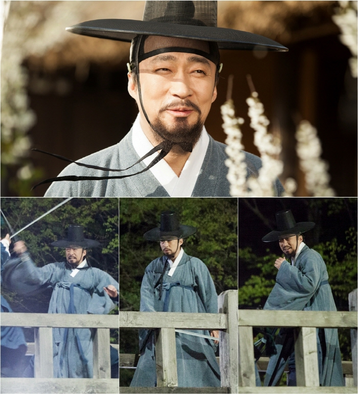 이성민은 따스한 봄 볕 아래 촬영을 기다리며 수줍은 미소를 짓고 있다. 그런가 하면 다리 위에서 장검을 장렬하게 휘두르며 박진감 넘치는 액션을 선보이는 가운데 익숙지 않은 액션이 부끄러운지 이내 쑥스러운 미소를 터뜨리는 장면이 포착되면서 귀여운 반전매력을 선사했다.