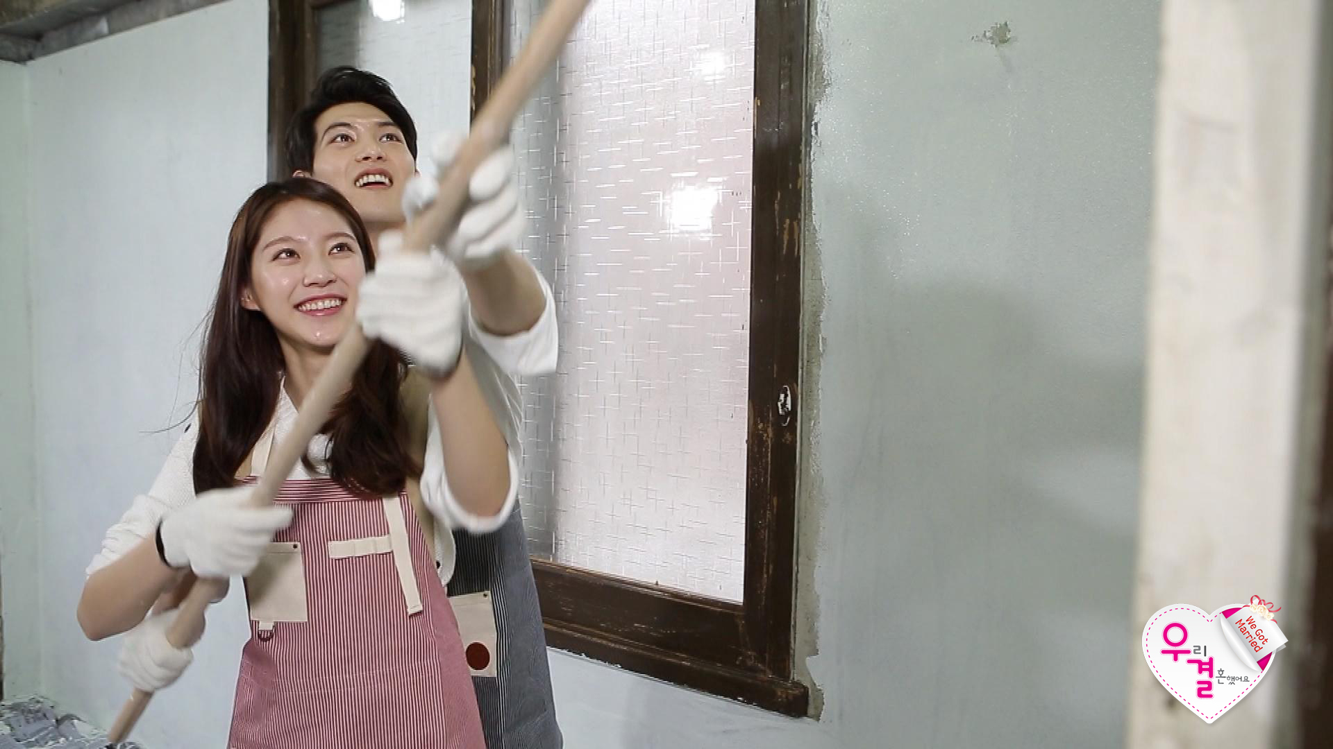 본격적인 신혼집 셀프인테리어 페인트칠을 위해 서로 앞치마를 매주기 시작한 두 사람! 앞치마 허리끈으로도 모자라(?) 목에 거는 끈까지 놓치지 않고 매주는데... 서로의 얼굴이 가깝게 밀착되자 얼굴이 빨개진 승연과 그런 모습이 귀여워 장난기가 발동한 종현! 앞치마를 매주기만해도 꿀처럼 달달한 꽁이부부의 모습은 현장의 스태프들까지 흐믓하게 만들었다는 후문.