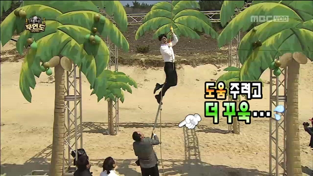 아침부터 무인도에 유배된 멤버들은 코코넛을 따먹기 위해 줄을 타고 올라야했다. 먼저 도전한 하하는 중요부위(!)에 고통만 남긴 채 포기하고, 정형돈은 0.1초만에 포기했으며, 정준하는 바닥에서 발을 떼지도 못했다.
