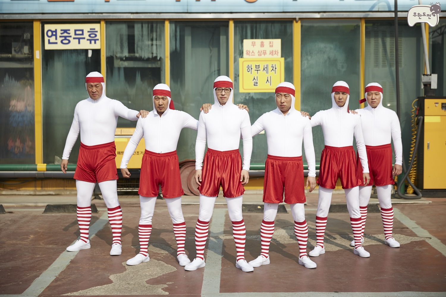 특히 모든 멤버들은 ‘쫄쫄이’ 의상을 착용하고 세차장과 목욕탕에서 촬영을 진행한 것으로 보여 <무한도전> '클래식' 특집들을 예상케 했다. 황광희는 온 몸을 던져가며 극한으로 망가지는 등 팀 내 활약을 예고했다.