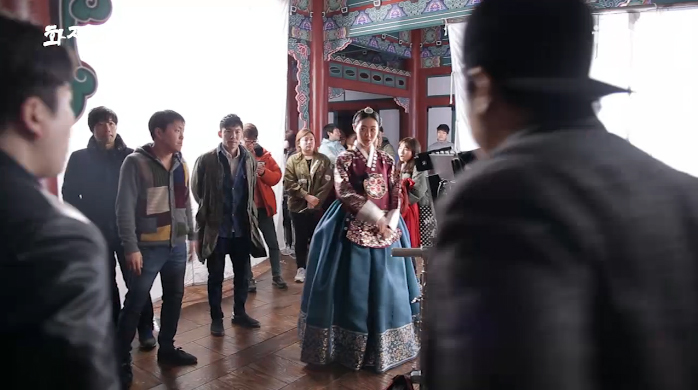 ▶ 正式开始拍摄,穿着红色韩服的李沄熹,肤色很白所以很漂亮。