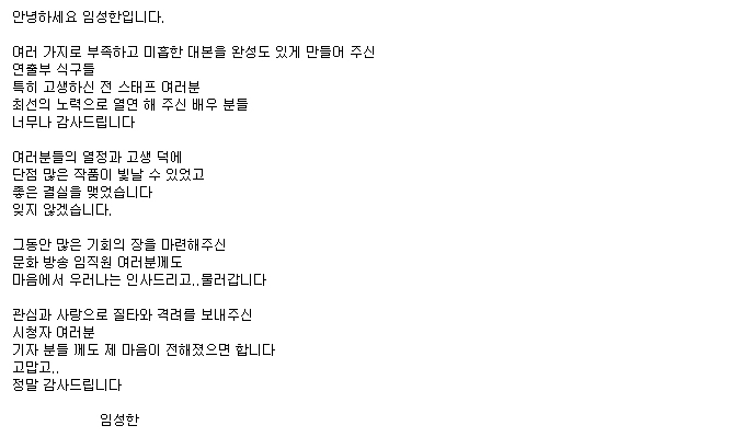 임성한 작가의 마지막 인사가 깜짝 공개됐다.