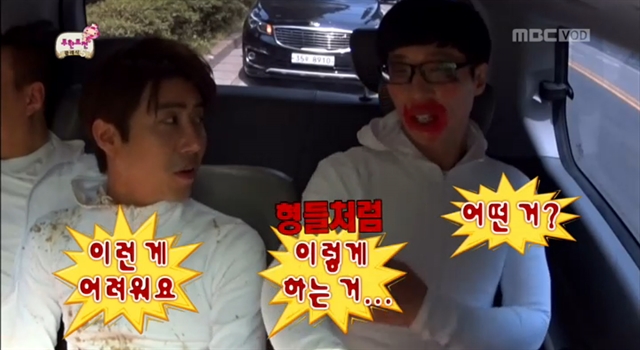 이에 유재석은 "하다보면 절로 될거야"라며 위로하고 이어 "잠은 잘 잤니?"라고 물으며 상황극을 연출했지만 광희는 "네"라고 평범하게 대답하자 이를 본 정준하는 "바로 지금 했어야 했어"라며 지적해 광희를 더욱 곤란하게 만들었다.