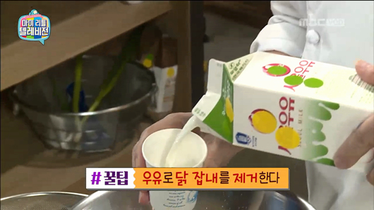4. 닭의 잡내를 없애기 위해 우유를 한컵 넣는다.