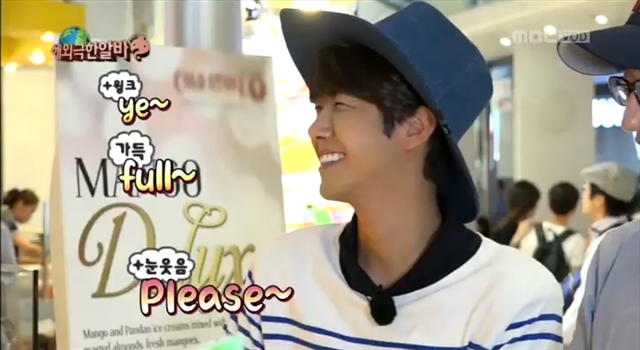 또한 주문에 나선 광희는 “메이 아이 헬프 유(May I help you), 캔 아이 헬프 유(Can I help You)”라고 엉터리 영어를 연발하며 애교 가득한 모습으로 여직원의 마음을 설레게 만들었다.