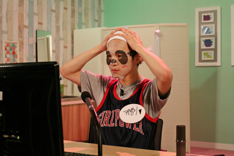 더욱이 샤이니 키는 눈 부분이 온통 검정색으로 색칠된 판다그림의 동물 팩을 얼굴에 척하니 붙며 자신만의 피부관리 노하우를 공개하기도 했따. 이어 그는 팩을 붙인 뒤 우스꽝스러워진 자신의 몰골을 보면서 웃음을 참지 못하고 온 몸을 뒤로 젖혀 목젖이 드러나도록 박장대소하는 모습으로 현장을 달궜다.
