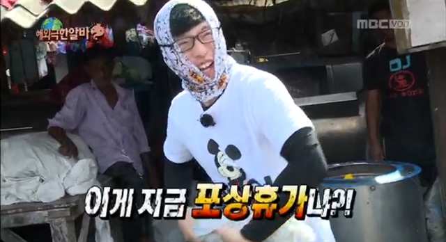 이어 "생각할수록 열 받아! 김태호 이게 지금 포상휴갸냐?"라며 유재석이 소리치며 빨래를 내리치자 옆에서 지켜보던 작업반장은 빨래를 하는 것으로 오해하고 칭찬하기까지 했다. 속 모르는 작업반장을 향해 유재석은 "선배님, 베케이션을 타일랜드로 갔다가... 선배님, 내 마음을 알아요 진짜?"라며 말도 않되는 영어로 울분을 터트렸다.