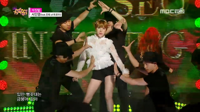 데뷔 14년차 퍼포먼스의 여왕 서인영, 한 편의 뮤지컬인줄!2002년 걸그룹 '쥬얼리'의 멤버로 데뷔, 올해로 데뷔 14년차가 된 서인영은 신곡 '거짓말'로 꽉 찬 무대를 선사했다. 그간 서인영은 자신을 수식하는 '신상', '슈즈 컬렉션'과 같은 단어들을 입고 뷰티 프로그램의 MC와 예능 프로그램들에서 활발한 활동을 해왔다. 그런 그녀가 미니 앨범 'Re birth'로 컴백, 그간 여타 프로들에서 쌓아온 재능과 매력을 한번에 보여주겠다는 듯 풍성한 무대를 선보였다.