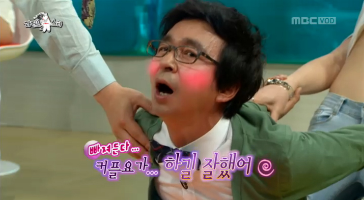 24일(수) 방송된 MBC 예능프로그램 <황금어장-라디오스타>에서 김국진이 예정화와의 커플 요가에 수줍은 미소를 지었다.