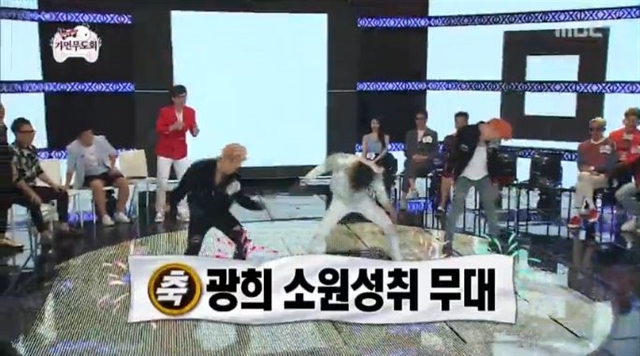 11일 방송된 MBC 예능프로그램 <무한도전>에서는 광희가 빅뱅의 '뱅뱅뱅' 노래에 맞춰 안부를 선보이는 모습이 그려졌다.