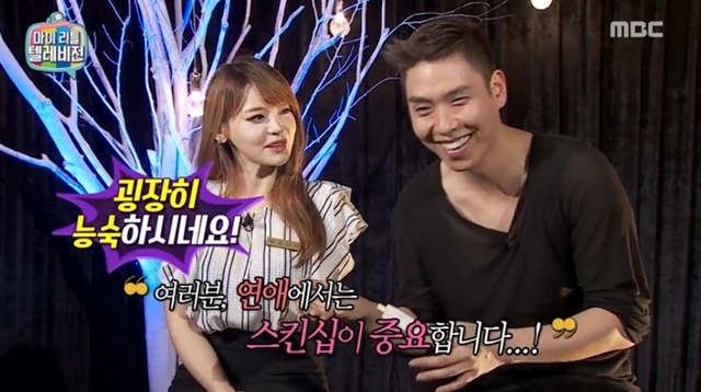 이어 이은결이 “여러분, 연애에서는 스킨십이 중요합니다”라며 서유리의 손을 잡자, 서유리는 “굉장히 능숙하시네요”라며 특유의 어조로 지적했다. 그러자 이은결 역시 서유리의 어투로 “예~ 그러네요.”라고 답해 또 한 번 웃음을 자아냈다.