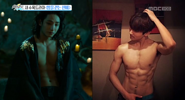 이날 <섹션TV 연예통신>는 정현세자의 비망록을 찾기 위해 고군분투를 펼치는 뱀파이어 선비 김성열(이준기)의 이야기를 다룬 MBC 새 수목미니시리즈 <밤을 걷는 선비> 제작발표회에서 배우들과 만났다. 특히 극중 이수혁과 심창민의 탄탄한 복근이 선공개 되면서 배우 이준기에 대한 기대감이 높아진 상태였다.