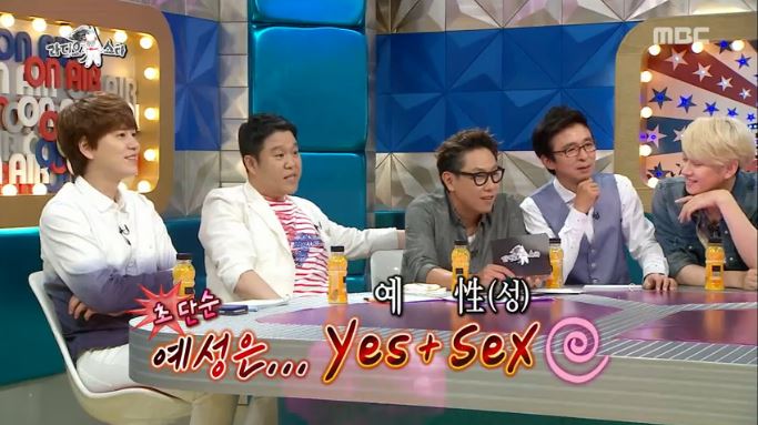 이어 MC들은 각 슈퍼주니어의 영어이름이 뭐가 있는지 물었고, 멤버는 각각 한명씩 대답했다. 그 중에서도 특히 예성의 이름이 가장 눈에 띄었는데, 예성은 자신있게 "예섹스요."라고 말해 웃음을 유발했다. 알고보니 예성의 yes, 성을 영어로 sex로 표현했던 것.