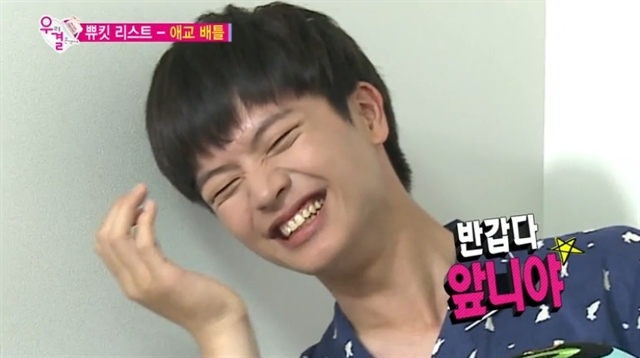 조이는 “앞니가 보이면 지는 걸로 하자”며 먼저 애교를 부렸지만 육성재의 앞니가 보이지 않아 실패로 끝났다. 이어 육성재는 “나 똥따또. 떨따똥따또. 물똥따또”라고 애교를 부렸지만 조이 역시 간신히 웃음을 참아냈다.