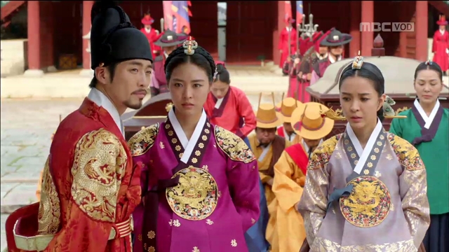 인목대비(신은정)과 정명을 맞이한 능양군은 “두 분을 궐로 모시게 되어 감개무량합니다”라며 능글맞게 대한다. “모든 게 주상의 은덕일세”라고 인목대비가 답례인사를 하자 능양군은 “공주는 할말이 없는가”라며 인사를 종용한다.