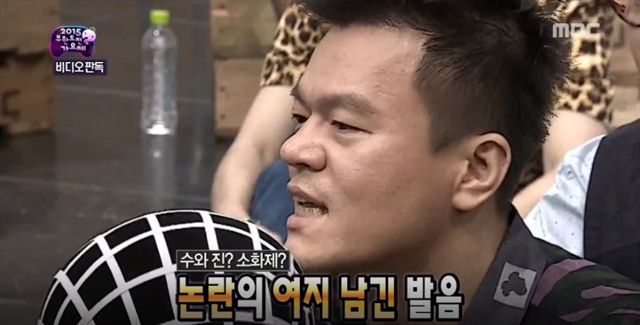 하지만 정답 중 ‘수와 진’을 말한 박진영에 출연자 사이에서 ‘소화제’라고 발음논란이 일었다. 제작진의 판독결과 논란을 수용해 정답처리가 취소됐고 박진영은 처음으로 "말도 안 된다"며 발을 굴렀다. 이어 “김태호 PD 이분 훌륭한 분이라고 들었는데 뭐냐”며 2015 무도가요제 녹화 사상 처음으로 앙탈 섞인 역정을 냈다. 이런 박진영을 배려한 김태호 PD에 유재석-박진영 팀에 폭죽 효과가 돌아갔고 그때야 박진영 얼굴에 함박웃음이 번졌다.