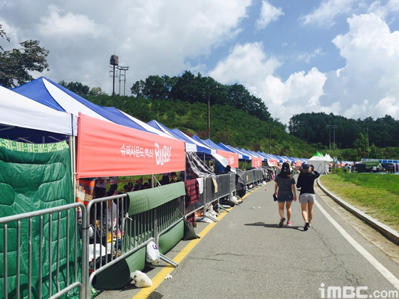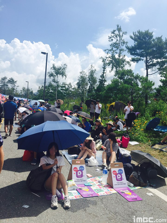 그나마 천막 안으로 자리를 잡은 사람들은 운이 좋은 편이다. 뜨거운 햇살을 가리기 위해 우산을 쓰고도 바닥에 주저앉아 오매불망 입장만을 기다리는 관람객들까지 더한다면 예상 관람객의 수는 수용 인원을 훨씬 웃도는 상황.