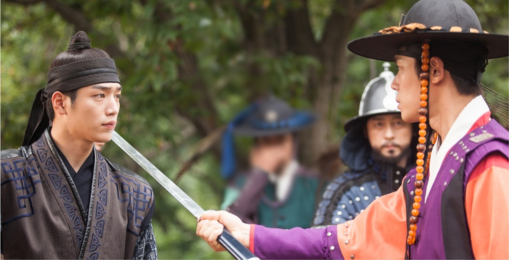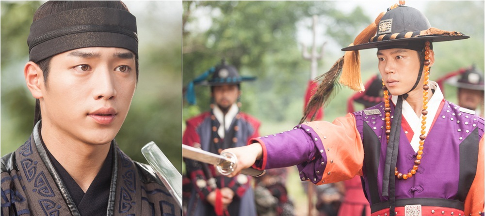 인우는 무복 차림의 주원에게 칼을 겨누고 있는데, 서늘한 표정과 그의 손에 들린 장검이 일촉즉발의 긴장감을 자아낸다. 동시에 놀란 주원의 표정에는 슬픔이 서려있어, 한때 죽마고우였던 두 사람의 대립에 안타까움을 자아내고 있다.