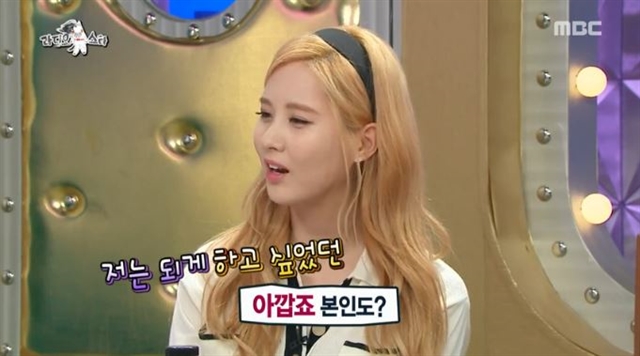 19일 방송된 MBC 예능프로그램 <황금어장-라디오스타>에서는 소녀시대 멤버 서현이 각종 성대모사를 섭렵하는 모습에 모든 패널들이 혀를 내두르는 장면이 그려졌다.