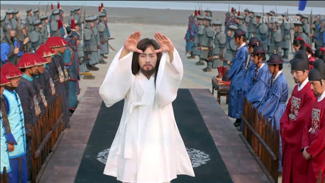 결국 청 장수 앞에 무릎을 꿇게 된 인조는 머리를 풀어헤치고 소복 차림으로 나타났다. “조선의 왕은 삼배구고두를 행하라”는 말에 인조는 무릎을 꿇고 세 번 절했다. 이 모습에 소현세자는 참담한 표정이 됐고, 봉림대군(이민호)에게 “고개를 들거라. 반드시 오늘을, 이 순간을 잊지 말거라”라며 통한에 찬 눈물을 흘렸다.