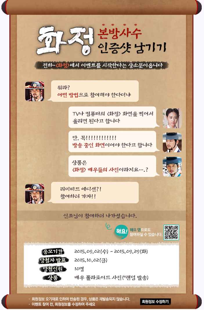 ☞ MBC <화정> 이벤트 참여하러가기 “상품이 <화정> 배우들의 사진이라지요?”