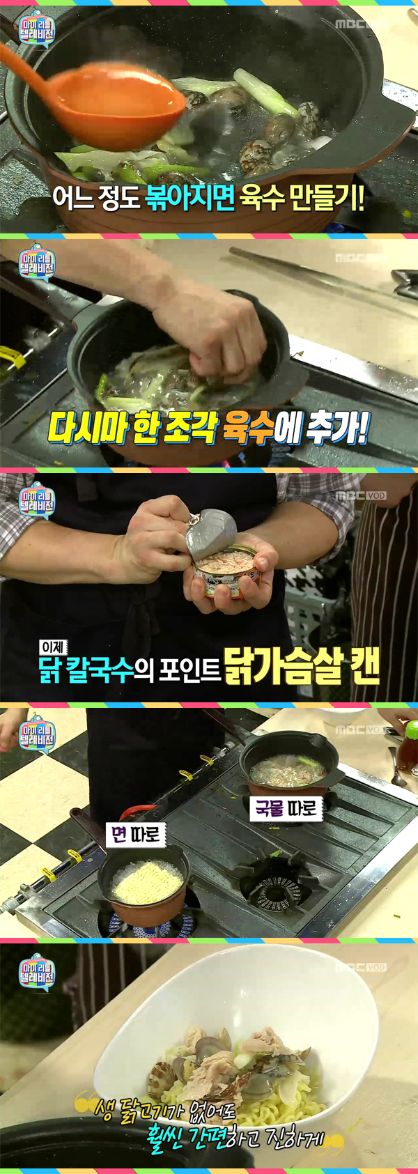 바지락, 닭고기 캔, 대파, 다시마, 라면사리