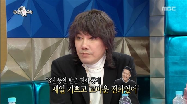 이날 김장훈은 싸이와의 불화설에 대해 "시간이 많이 지나지 않았나. 작년에 싸이에게 전화를 했다"라고 운을 뗐다.