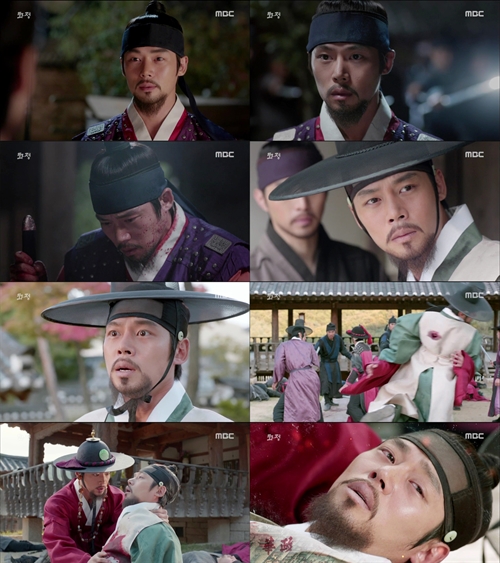MBC 월화드라마 <화정> 의 배우 한주완이 비장한 최후를 맞을 위기에 처했다. 친구를 구하려다가 아버지의 총에 맞아 쓰러진 것이다.