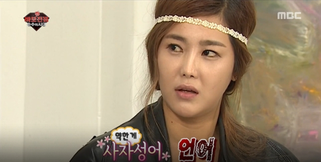 이어 솔비는 “사자성어, 언어가 약하다”며 다소 광범위한 취약 영역을 드러냈다. “봄이 영어로 뭐냐”며 급 출제된 정준하의 영단어 문제에 대답하지 못한 솔비는 “이런 걸 대답해주는 게 너무 자존심 상한다”고 말해 현장을 폭소케 했다.