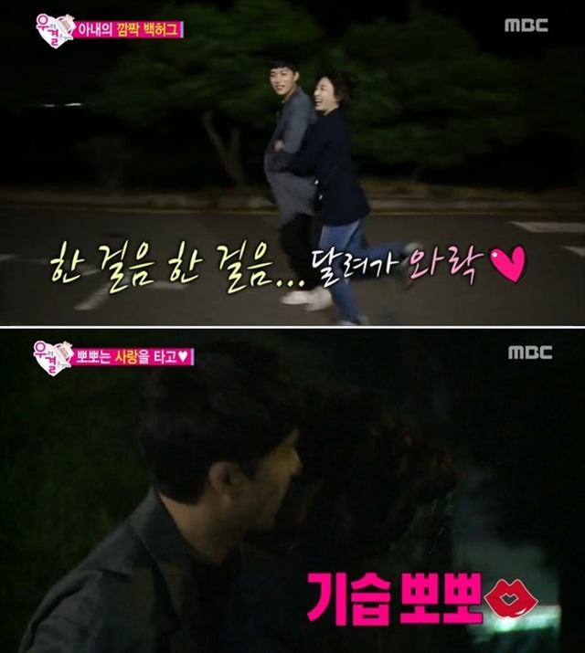 강예원의 기습 백허그에 오민석이 기습 뽀뽀를 했다.