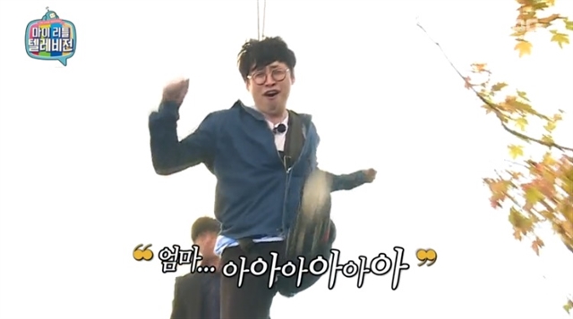 한참을 망설이던 모르모트 PD는 비명과 함께 뛰어 내렸고, 어설픈 슈퍼맨 자세로 착지하며 “아~ 됐다”라고 안도해 웃음을 자아냈다.