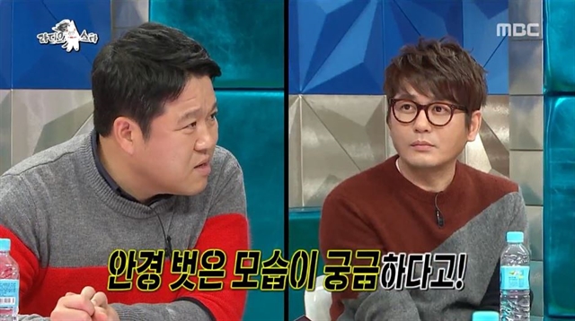 28일 방송된 MBC 예능 프로그램 <황금어장-라디오스타> 451회에서는 신승훈이 걸그룹 '여자친구' 유주의 부탁으로 데뷔 후 처음으로 안경 벗은 얼굴을 공개했다.