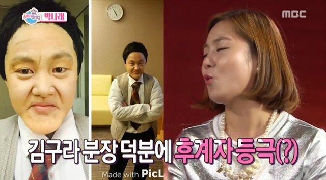 이어 김구라의 후계자로 등극(?)한 사실에 대해 “그건 김구라 선배님의 분장을 했기 때문에 그것이 마음을 샀던 것 같다”고 인정하며, 김구라가 동현이에게 “(박나래를) 작은 아빠라고 생각하라”고 말했다는 에피소드를 전해 웃음을 자아냈다.