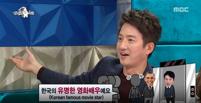 11일 방송된 MBC 예능 프로그램 <황금어장-라디오스타> 453회에서는 ‘글로벌 인맥왕’ 정준호가 출연해 오바마 대통령과 마주친 일화를 전했다.