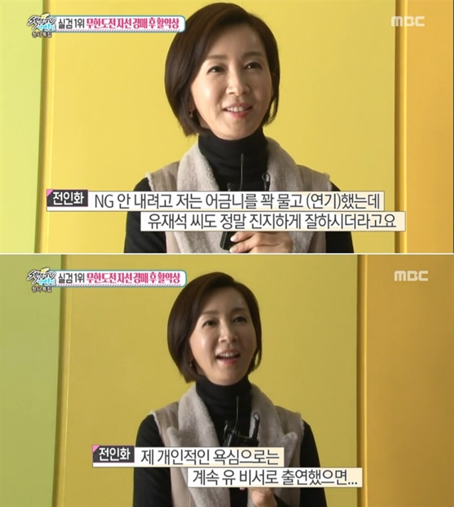 이날, 최고가에 낙찰된 유재석의 활약상을 소개하며 촬영을 함께한 전인화의 인터뷰도 공개했다.