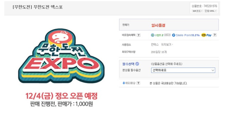MBC 인기 예능프로그램 <무한도전> 엑스포 관람 티켓이 4일(금) 정오에 G마켓을 통해 오픈을 예정하면서 시청자들 사이에서 화제로 떠오르고 있다.