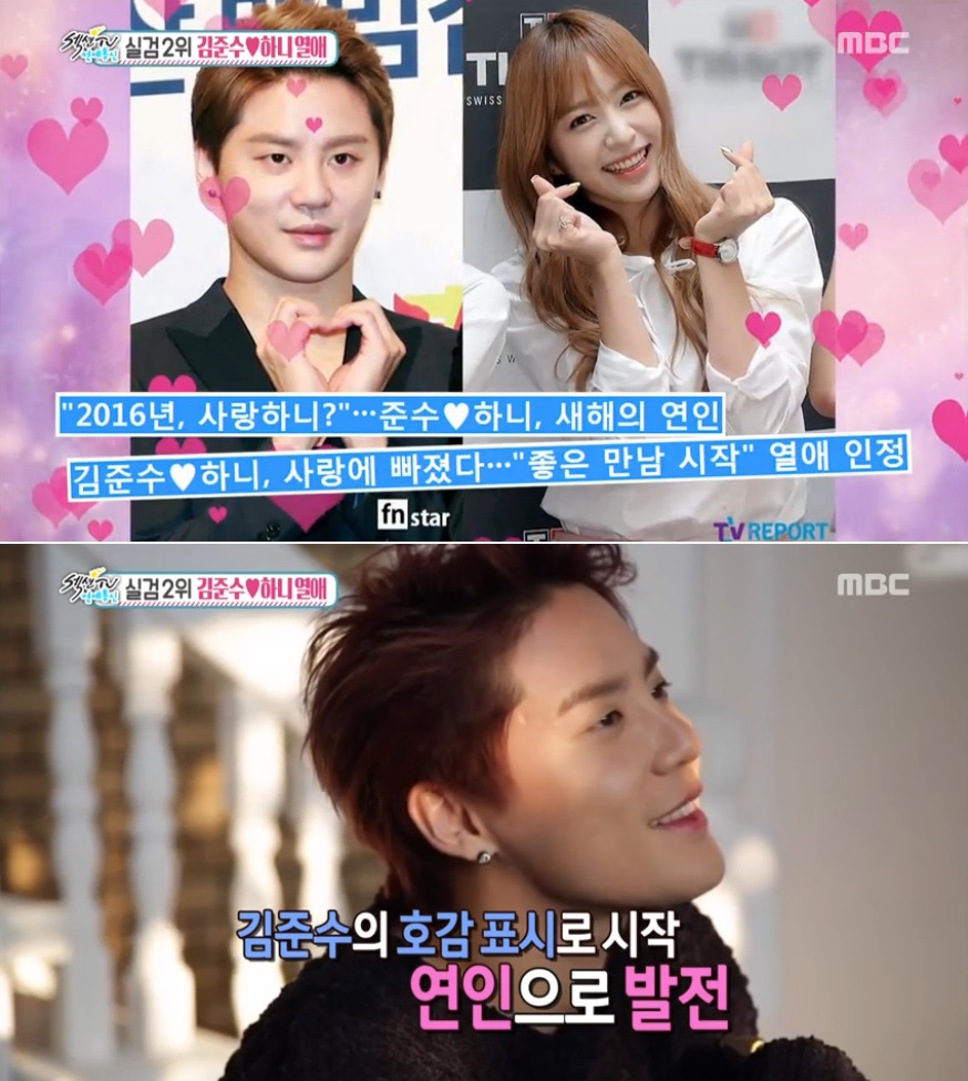 3일에 방송된 MBC 예능프로그램 <섹션TV 연예통신>에서는 이번 주 실검순위 2위를 차지한 준수와 하니의 열애 소식을 소개했다.