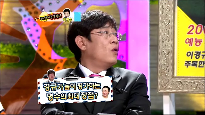 이 날 방송에서 이경규는 박명수에 대해 "3인자, 4인자 정도가 좋다."며 "2인자도 너무 많이 올라갔다."고 혹평해 웃음을 자아냈다. 이에 김구라는 "요즘 제 자리를 찾아가고 있다."며 이경규의 독설에 독설로 화답했다. 또한 이경규는 "보통 10년 고생하면 인기가 10년 정도 간다. 이 친구가 10년 고생했죠? 10년 다 됐다."라며 평가를 이어갔다.