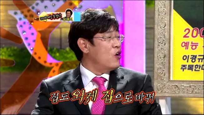 이 날 2008년을 빛낸 예능인을 빛낸 7인 중 한 명에 포함된 유재석에게 김구라는 "무결점 방송인이다"라는 의외의 긍정적인 한줄평을 남겼다. 그러나 이내 "방송하는 기계다. 와이프는 좋겠다."라며 김구라다운 일침을 이어가 웃음을 자아냈다.