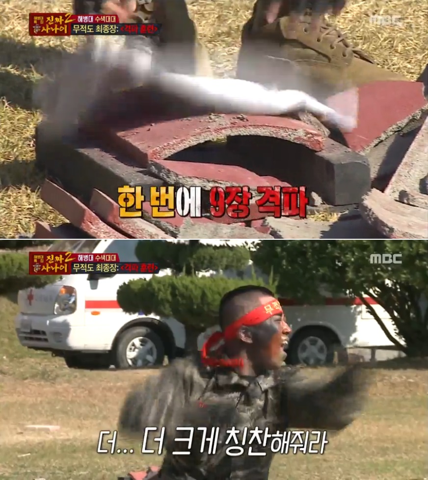 10일에 방송된 MBC 예능프로그램 <일밤-진짜 사나이>에서는 격파 훈련을 받는 멤버들의 모습이 그려졌다.