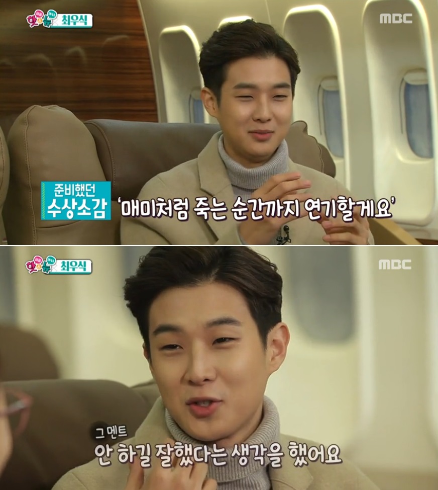 최우식은 신인상 수상 후 “수상 소감을 준비했지만 다 까먹었다”며 인터뷰에서 준비했던 수상 소감을 전했다. 이어 최우식은 당시 준비했던 “매미처럼 죽는 순간까지 연기 할게요”라는 수상 멘트를 소개하며 “안 한게 좋았던 거 같다”고 말해 웃음을 자아냈다.