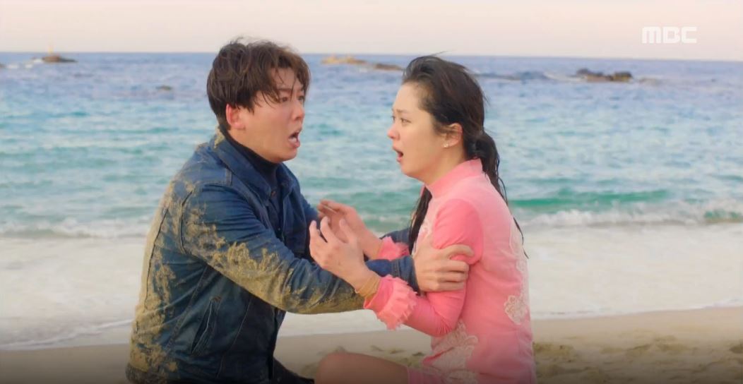 하지만 이내 바다에 빠진 수혁은 “살려주세요!”라며 소리쳤다. 이를 발견한 미모는 “가지가지 한다”라고 한 후, 그의 머리채를 잡아 육지로 끌어올렸다.